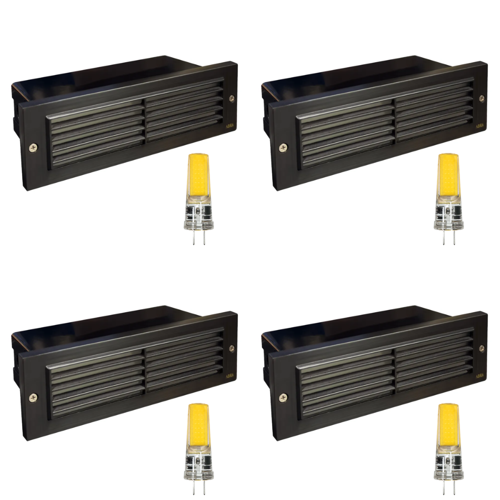This STB03 cast brass LED louver brick light creates a feeling of retro warmth of 19th-century lifestyle to your hallway, stairs, Walkways, crawlspace or other exterior spaces. Itβs an excellent example of outdoor lighting step lights, offering both charm and functional illumination for exterior steps and paths. Has a full cast brass face construction for heavy duty and long-lasting life expectancy. This low voltage hardscape light comes in Natural Brass and Dark Brass finishes.