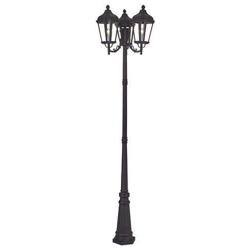 With clear glass and a textured black finish, this surface mount outdoor post light from the Morgan collection is an elegant way to illuminate traditional exteriors.
