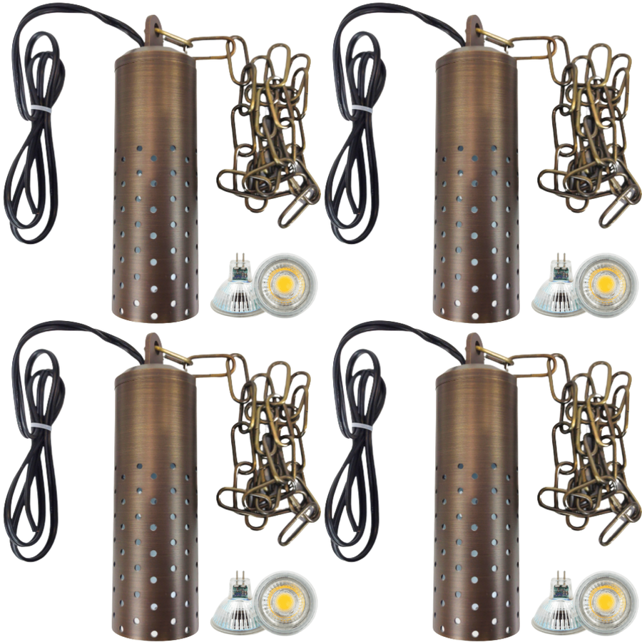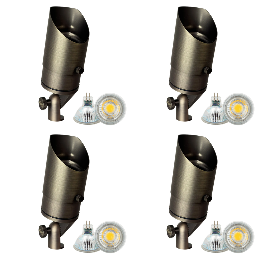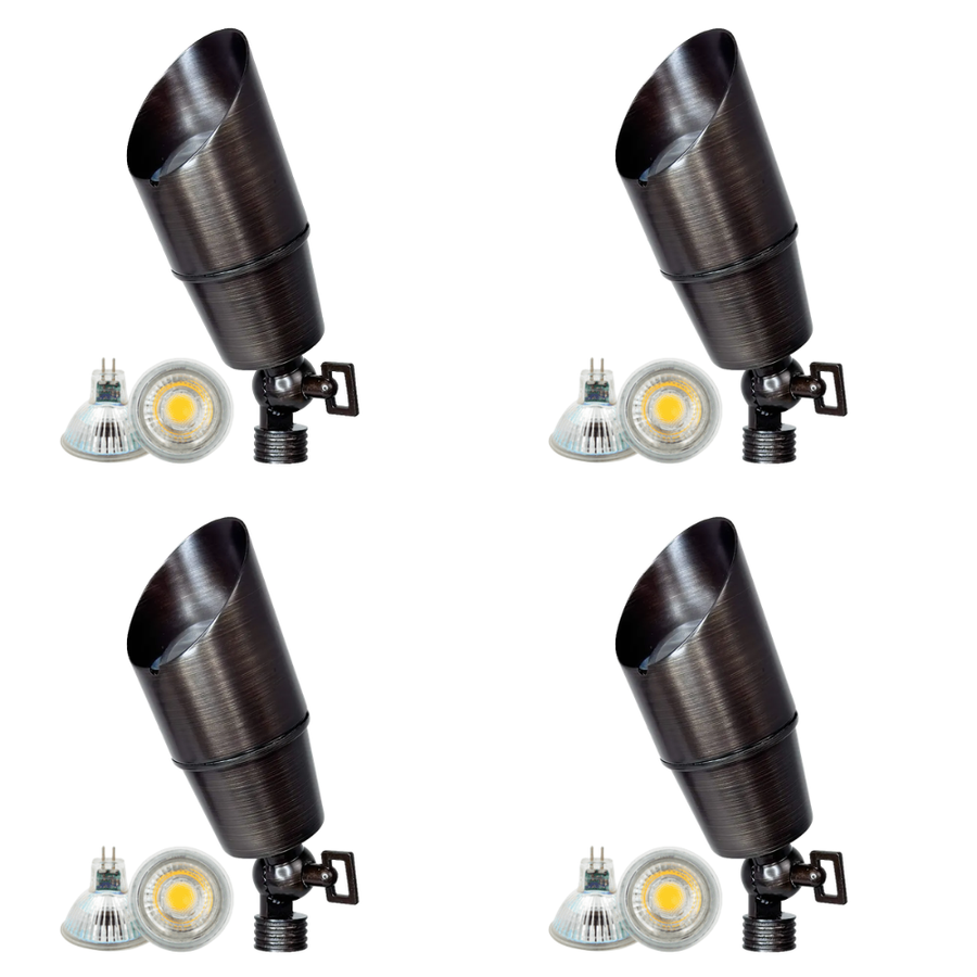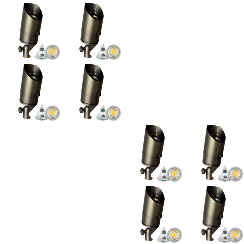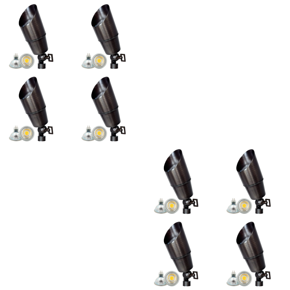 Estos kits de iluminación de paisaje de bajo voltaje están creados para haga que su proyecto de iluminación exterior sea simple y económico Todo lo que necesitas está en un paquete. Las luces están diseñadas para funcionar con un circuito estándar de 110 V CA. El kit incluye la lámpara, todo el hardware de montaje, un conector de cable y un transformador de 12 voltios. El transformador será necesario para cualquier dispositivo que utilice una batería.
