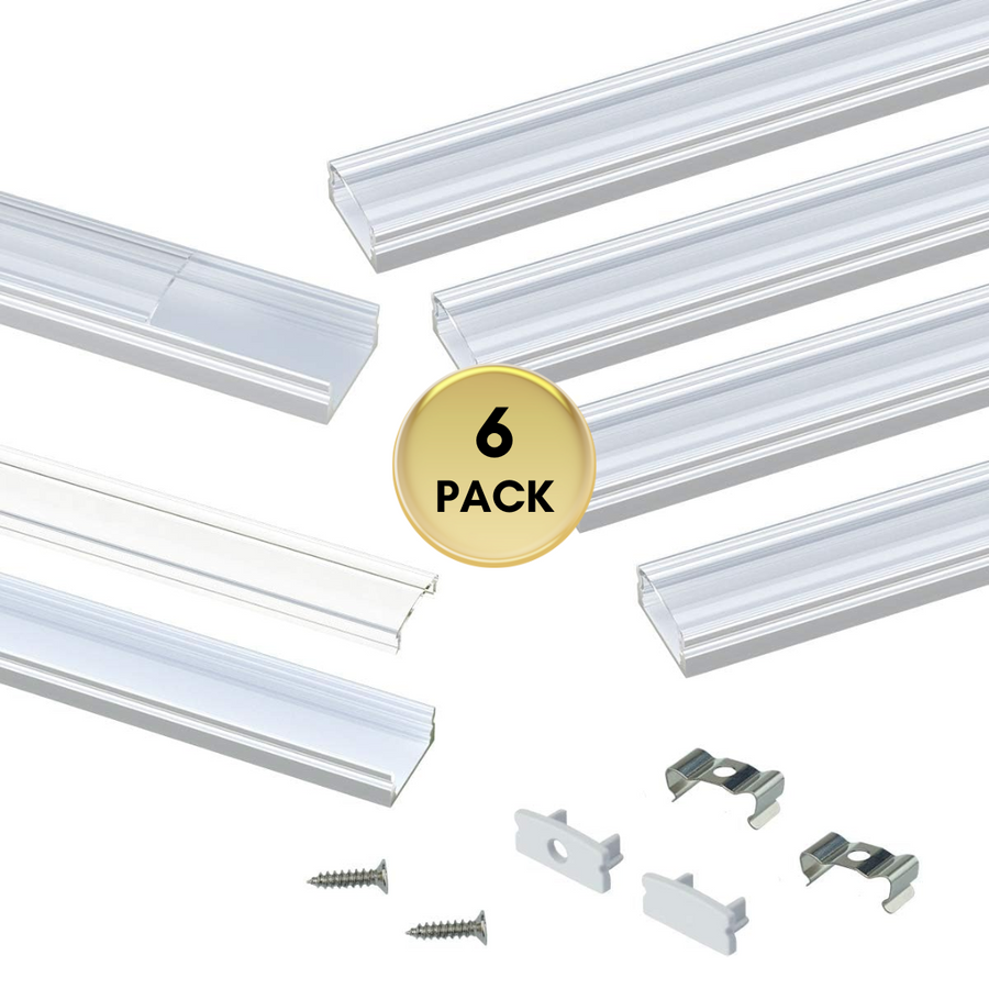 6 1m/3.3ft Aluminum Channels with Clear Plastic Covers