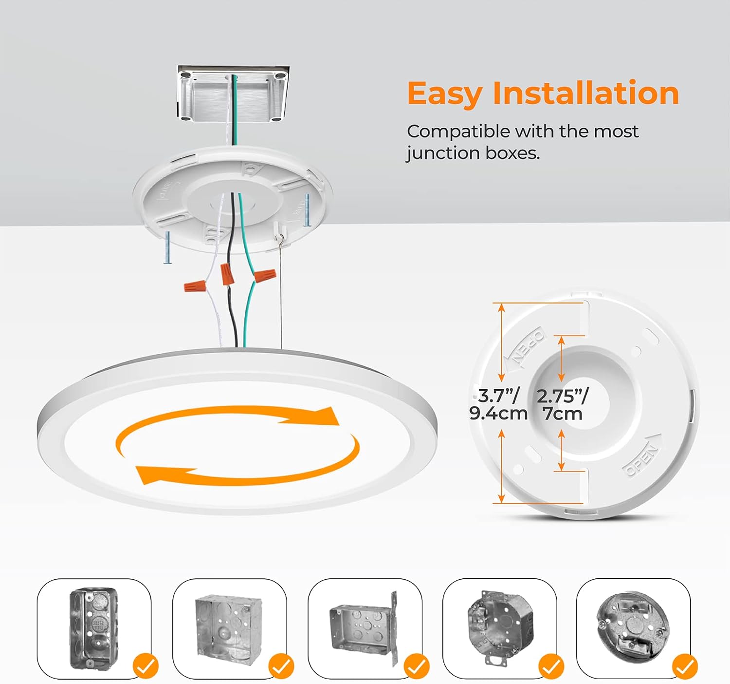 Convert your old recessed downlights to advanced LED Energy-saving technology with the 9" color-selectable flush mount downlight. This innovative downlight features35 selectable color temperatures and a warm color 3000K, natural white 4000K to 5000K cool white light option. This produces 1800 Lumens using only 18 Watts - up to 86% less energy than an equivalent 50 to 60-Watt incandescent. Preset your preferred color temperature using the toggle on the fixture, and go from regular lighting to night mode with just a flip of a standard light switch. A 90 plus CRI light makes colors vibrant and skin tones look more natural, all while saving energy and lasting for a decade or more.