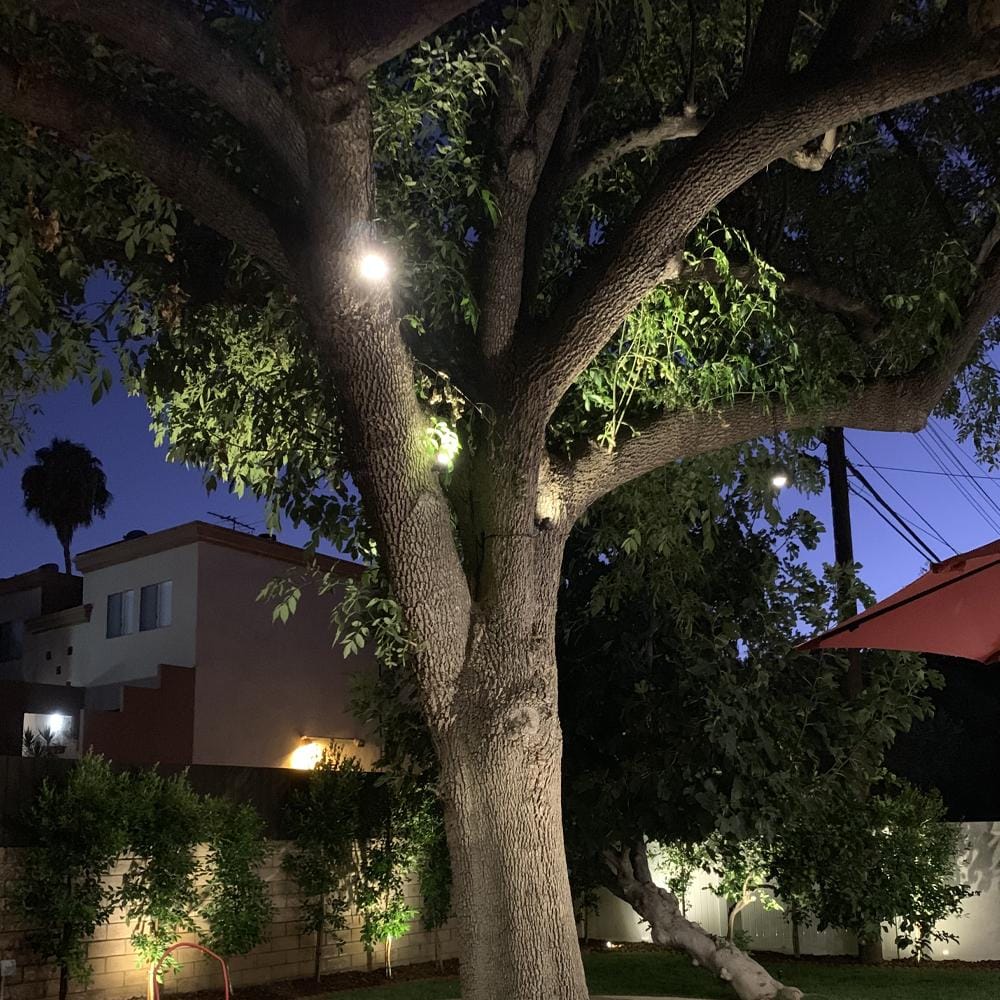An integrated 6W Philips light emits 600 Lumens and 3000K warm white light temperature, creating an excellent illumination effect. Its size is 6” (H) x 2.25” (W). This standard spotlight is ETL certified. A 40" chain is included so that you can make it a suitable height by shortening the chain to fit your application and can be wrapped around tree branches, fences, etc.