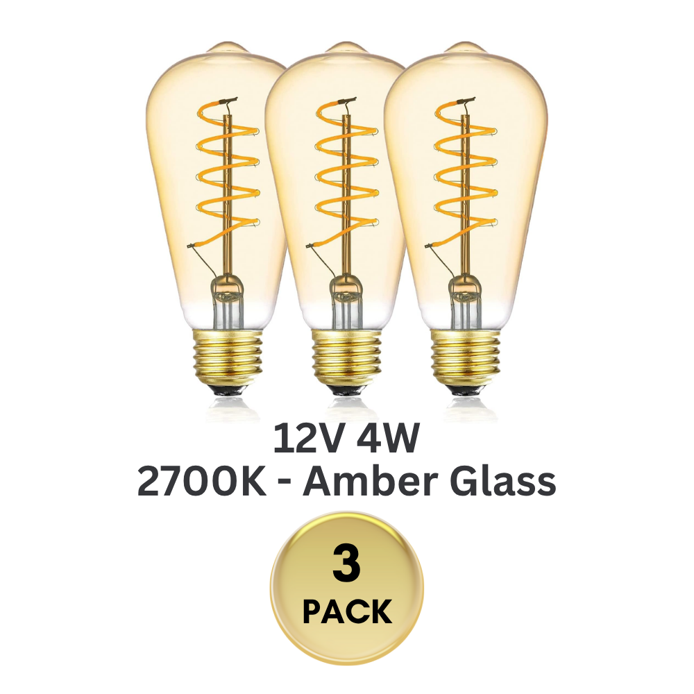 Producing as much light as 40W halogen or incandescent light bulb with a fraction of the energy, these E26 4W LED Edison light bulbs are designed to save up to 80% of your electricity bill on lighting. This novelty glass made Low voltage LED bulb features a wide beam, is heat resistant, energy saving, dimmable, durable and easy assemble. This 400 Lumens, 80 CRI, LED Edison light bulb is made to ensure a long lifespan, over 20,000 hours, which saves effort and maintenance costs on changing bulbs frequently.