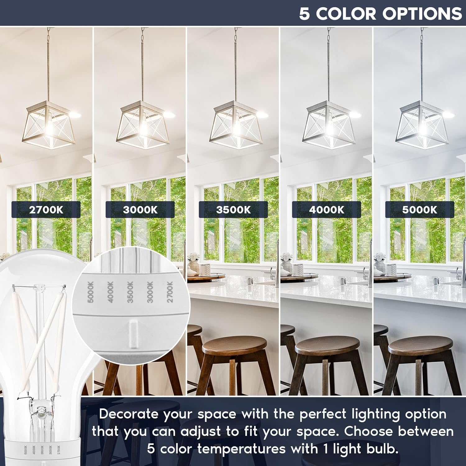 Certified for environmental protection standards and compliant with Waste Directive, so no UV or IR radiation, no hazardous emissions, mercury-free, and safe to use in your living environments. The light color temperature of this bulb has selectable 5CCT 2700K/3000K/3500K/4000K/5000K, perfect for post lights in front of homes or for wall sconces.