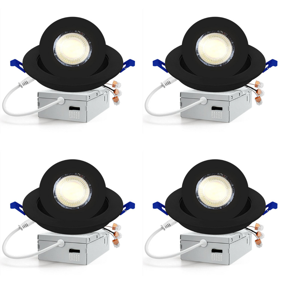 The LED Canless Recessed Light 4 inch Gimbal 5CCT Dimmable is a versatile solution for adjusting color temperature and matching room aesthetics. With 5 temperature options (2700K, 3000K, 3500K, 4000K, 5000K), you can easily select the most suitable one for your space using the slider switch on the junction box. This slim downlight is designed for 5%-100% smooth dimming and produces high-quality light without flickering or humming noise, thanks to its new generation of LED chips.